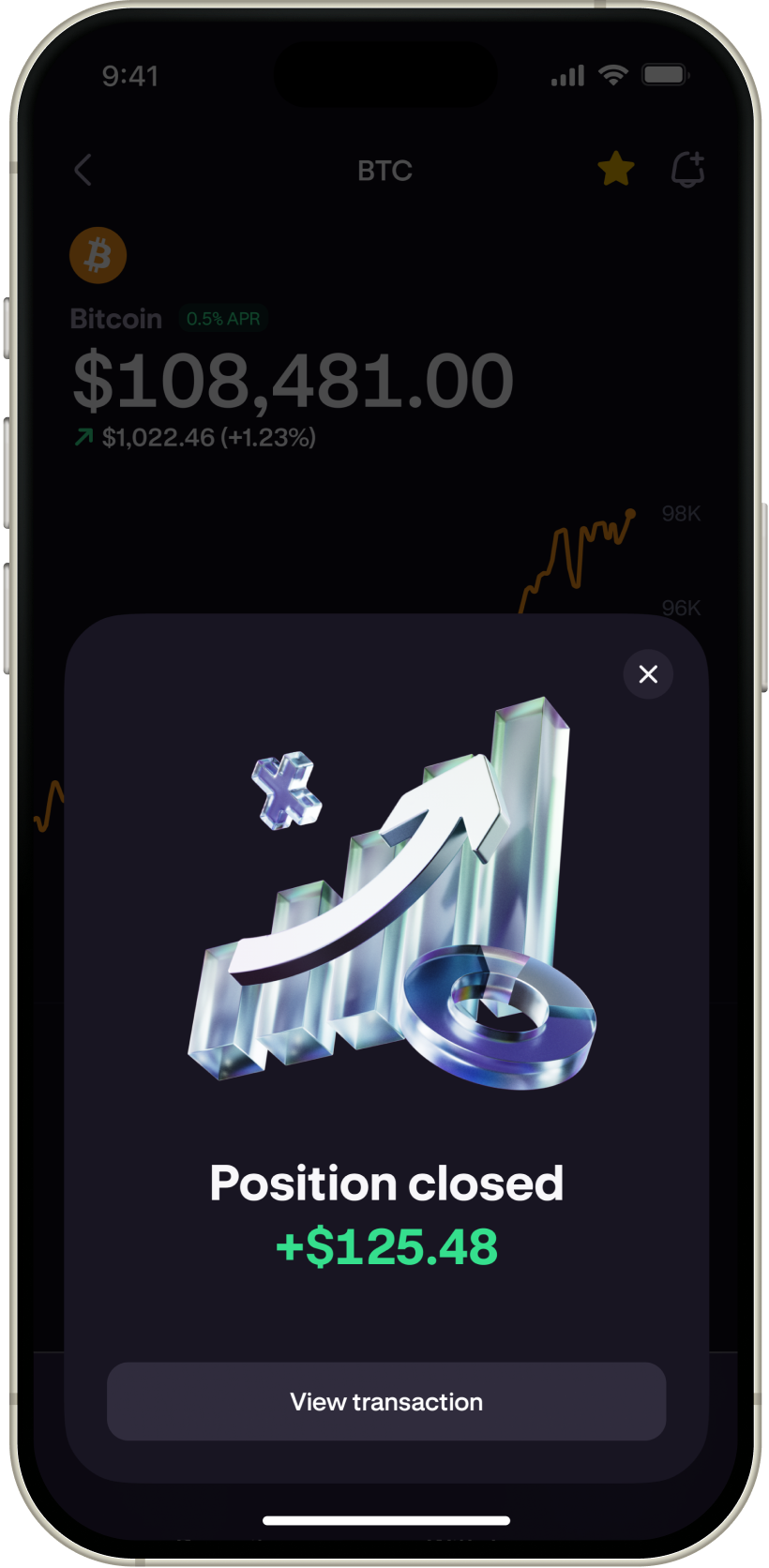 Financie posições usando qualquer criptomoeda ou moeda fiduciária.
